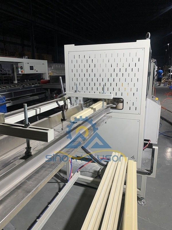 2Эта машина WPC включает в себя: экструдер, форму, вакуумный калибровочный стол, машину для вытягивания, резалку и стекера.